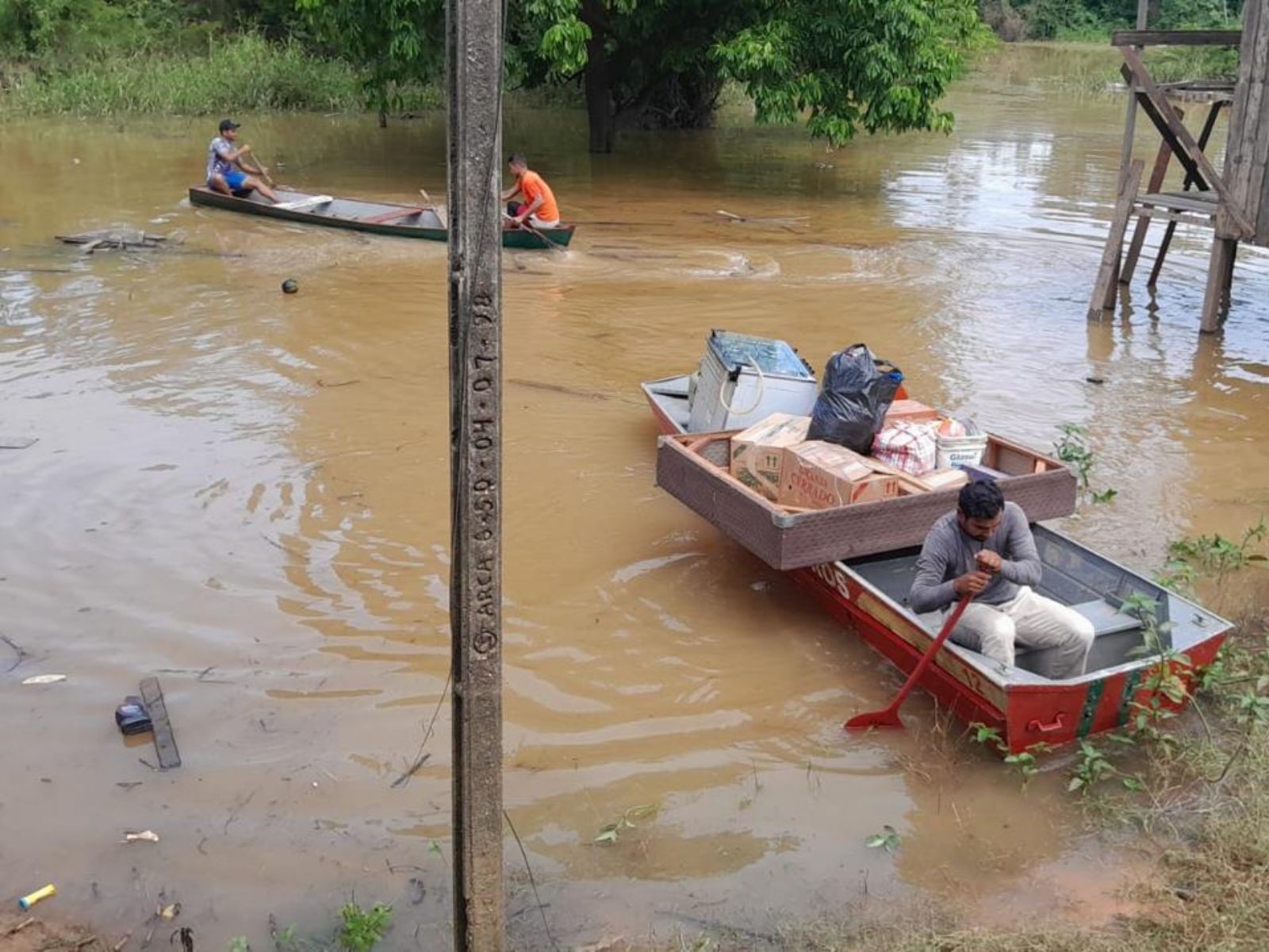 Das famílias retiradas, quatro foram para o Parque de Exposições Wildy Viana, com 11 pessoas, e outras quatro para casas de familiares, ou seja, estão desalojadas.